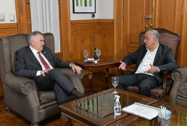 El gobernador, Osvaldo Jaldo, se reunió en Casa de Gobierno con el intendente de Tafí Viejo, Javier Noguera, con quien trató el avance de obras comunitarias en el municipio pedemontano.