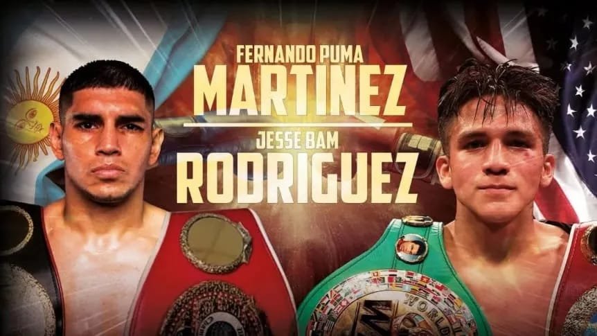 El argentino Fernando ‘Puma’ Martínez, enfrentara por la unificación de los títulos supermosca de la Asociación Mundial de Boxeo, Organización Mundial de Boxeo y Consejo Mundial de Boxeo, a Jesse Bam Rodríguez este Sabado en el ANB Arena de Riad, Arabia Saudita.