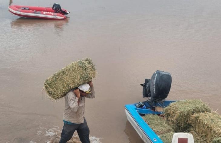 Por instrucción del gobernador Osvaldo Jaldo se ejecuta en el sur provincial un operativo integral y sin precedentes para el rescate de animales de pastoreo afectados por las inundaciones, que incluye el despliegue de helicópteros, lanchas, personal especializado, insumos veterinarios y provisión de alimento, en un trabajo coordinado con organizaciones civiles y productores locales.