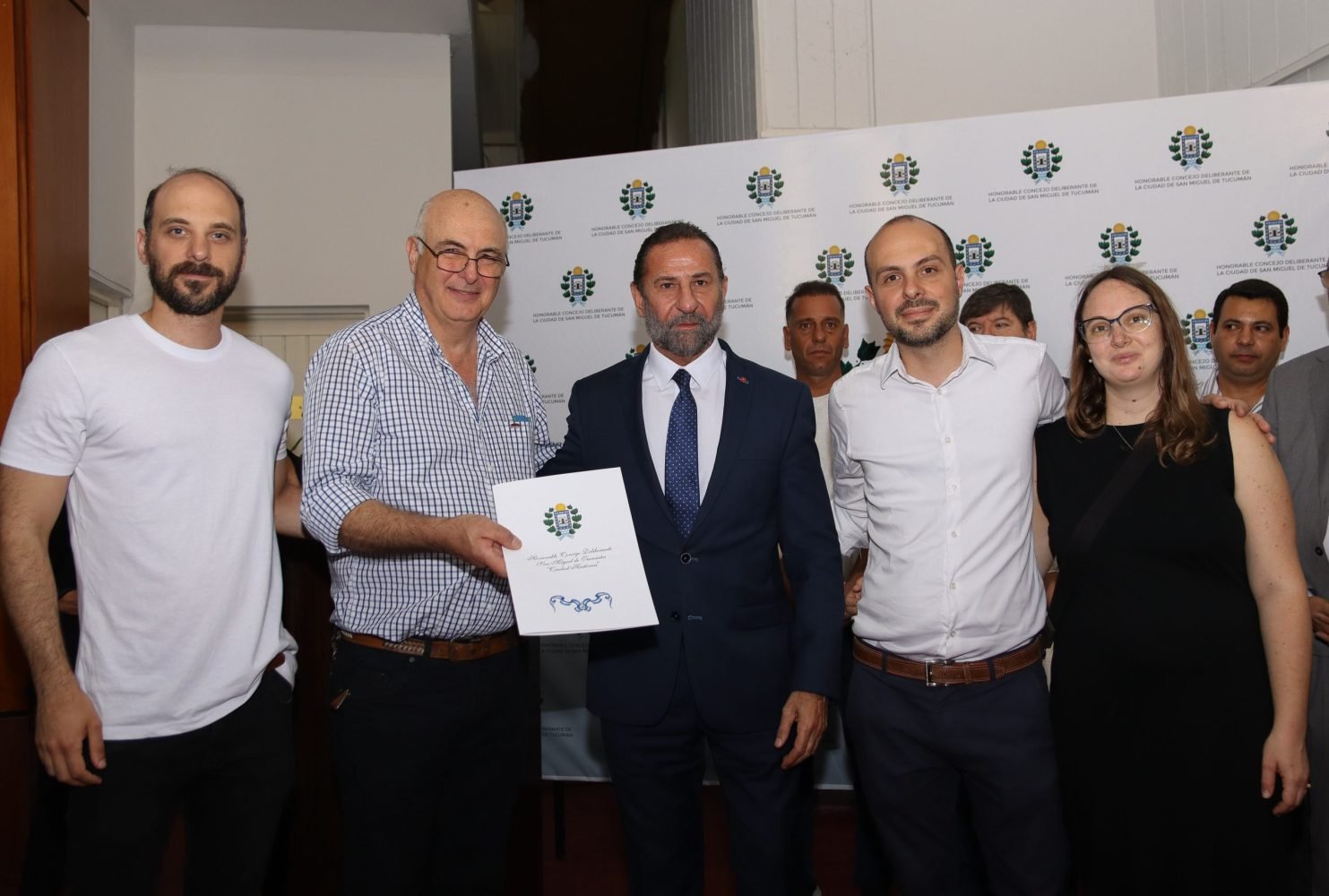 «Hoy no sólo estamos homenajeando a los empleados municipales de este Concejo, también reconocemos a quien fuera nuestra compañera, Patricia Haquin. Desde el momento en que asumimos, ella siempre estuvo presente, tenía una personalidad incansable y siempre estaba predispuesta a brindarse más junto con todo su equipo de trabajo. Siempre tenía ideas nuevas», expresó Juri, rodeado por los concejales Carlos Arnedo, Ernesto Nagle, Gustavo Cobos, Leandro Argañaraz, José María Franco, Federico Romano Norri, Facundo Vargas Aignasse, Alfredo Terán, Carlos Ale, Ana González y Gastón Gómez.