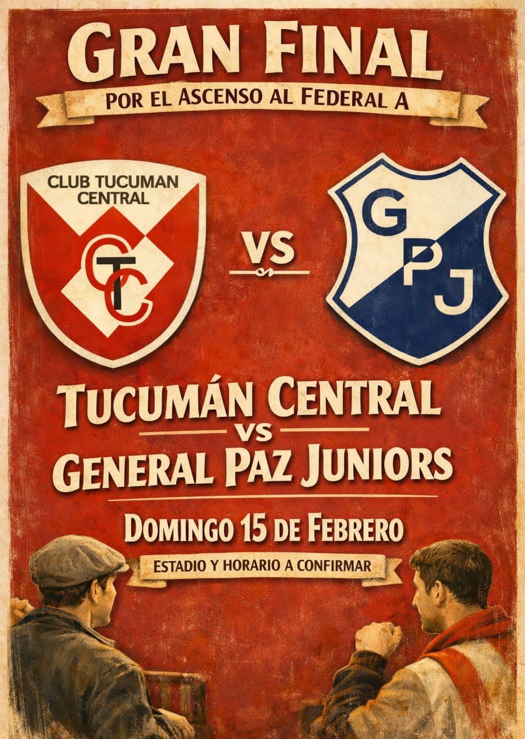 Por el ascenso al Federal A, Tucumán Central deberá enfrentar a General Paz Juniors(Cordoba). El equipo Cordobés obtuvo esta instancia al derrotar a Central Argentino(La Banda) Santiago del Estero, los resultados fueron en la ida jugada en Córdoba 3-2 y la vuelta en Santiago fue 1-0.