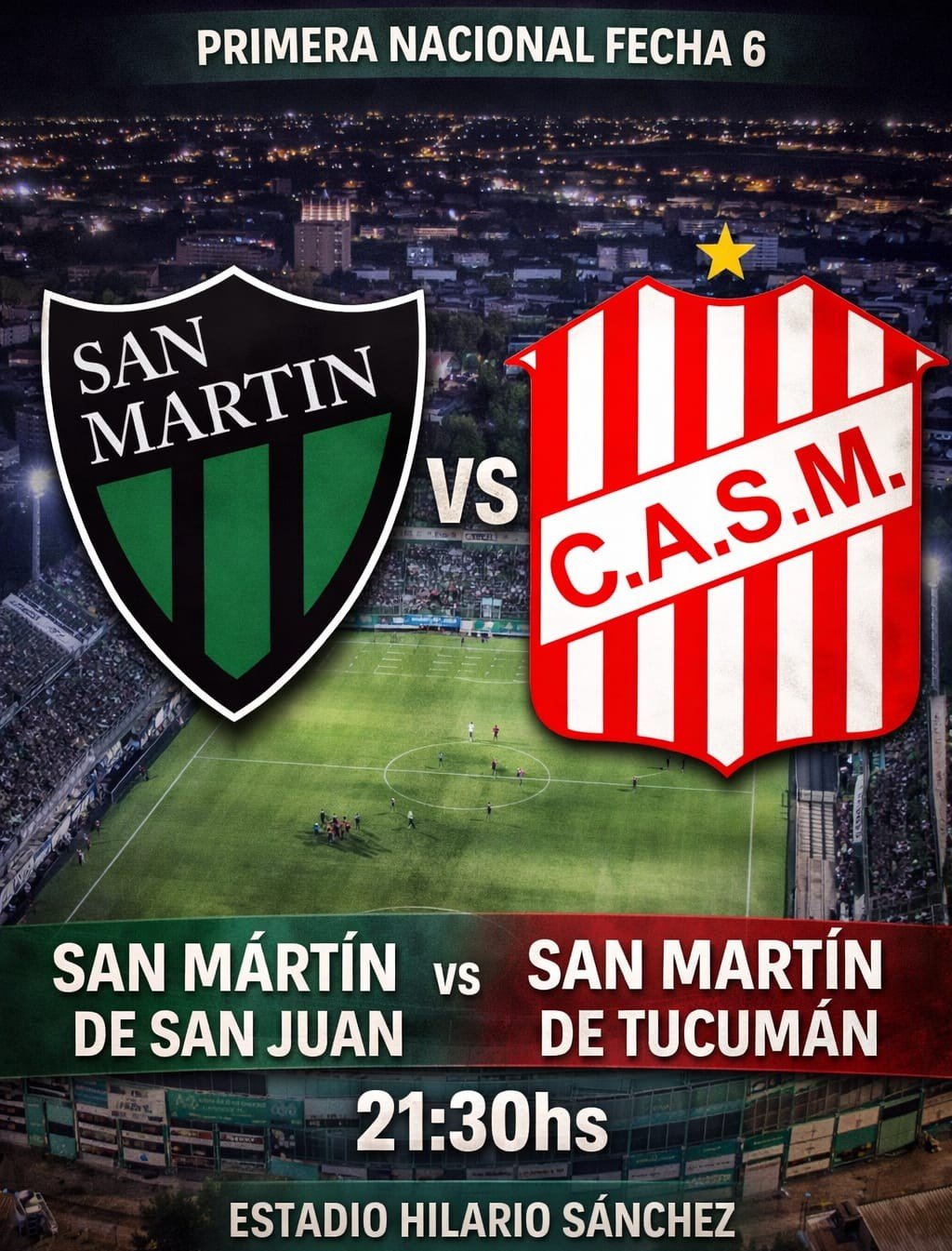 San Martín desde las 21:30hs, enfrenta a San Martín de San Juan, por la fecha 6 de la Primera Nacional.