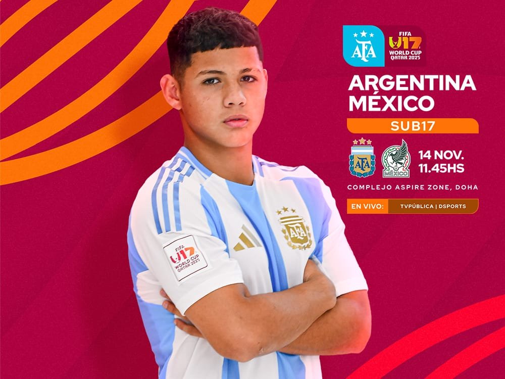 El seleccionado Sub17 argentino enfrenta a México por los 16avos de final del Mundial Sub17 que se juega en Qatar.