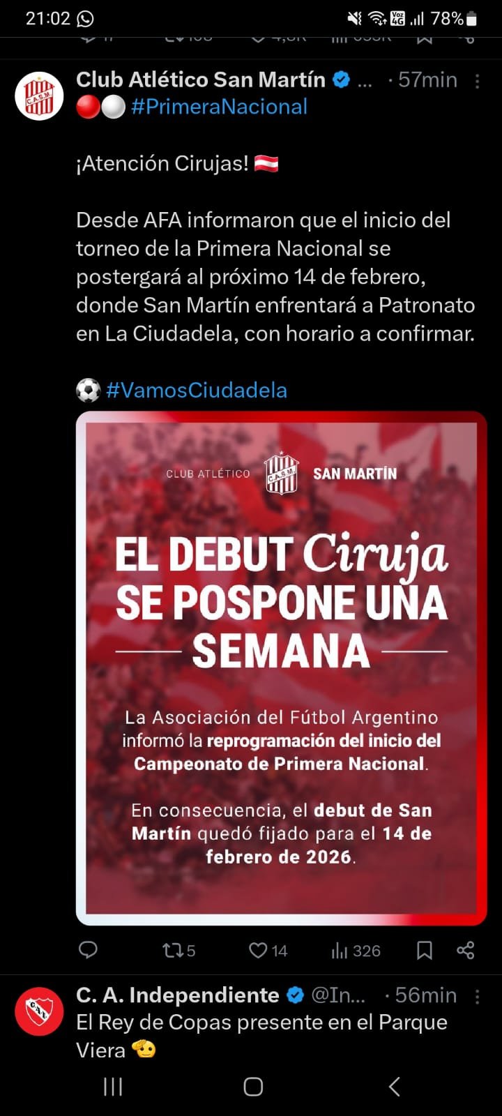La entidad Madre que maneja el deporte más popular de Argentina (AFA), reprogramo el inició de la Primera Nacional 2026. En principio iba a comenzar el 7 de febrero, ahora será el día de los enamorados el 14 de febrero.