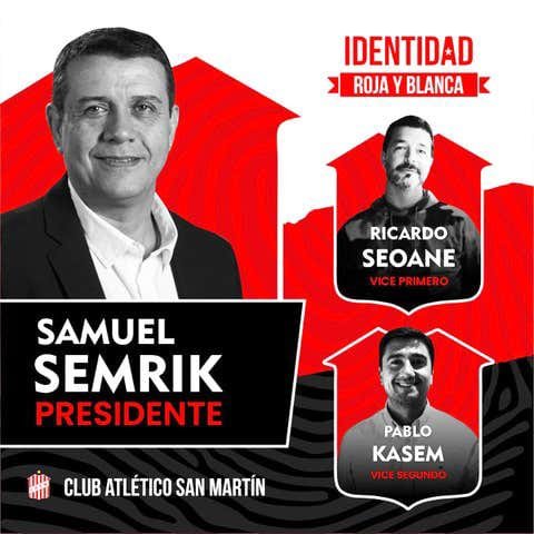 Modernicemos San Martín, con Augusto Rodríguez como presidente, Unidad Roja y Blanca, presidente Oscar Mirkin e Identidad Roja y Blanca, presidente Samuel Semrik.