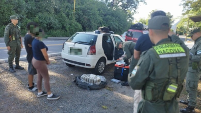 Los gendarmes detuvieron la marcha de un automóvil conducido por un hombre que circulaba desde San Miguel de Tucumán con destino a la ciudad de San Fernando del Valle de Catamarca. A simple vista advirtieron que en el baúl había un bulto cubierto con una lona negra tipo arpillera. En presencia de testigos, abrieron el paquete y hallaron 17 envoltorios o “ladrillos” embadurnados con grasa. De inmediato se realizó la prueba de campo Narcotest, que confirmó un peso total de 17 kilos con 861 gramos de marihuana. Se dio intervención a la Justicia Federal de Tucumán, que ordenó el secuestro de los estupefacientes, del vehículo y la detención del sospechoso por infracción a la Ley 23.737.