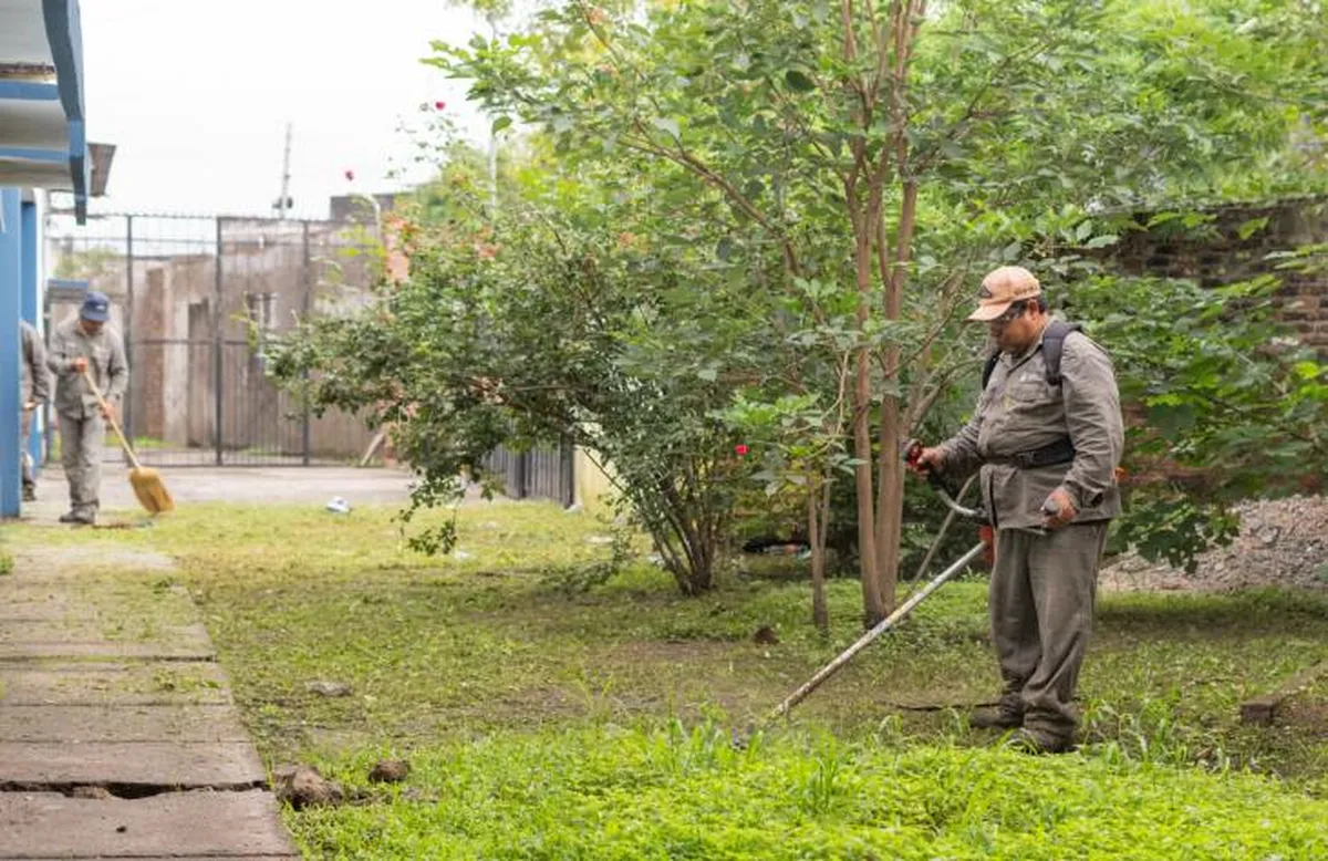 Los trabajos incluyen la limpieza profunda de canaletas para optimizar los desagües, reparaciones por filtraciones e inundaciones, mantenimiento de instalaciones eléctricas y plomería, además de tareas de albañilería y pintura tanto interior como exterior. De forma complementaria, se realizan labores de desmalezamiento y fumigación, fundamentales para preservar la salubridad de los espacios comunes y aulas.