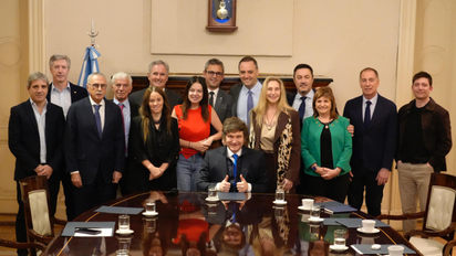 Con la presencia de Manuel Adorni (nuevo jefe de Gabinete) y de Diego Santilli (flamante ministro del Interior), el presidente Milei encabezó el encuentro.