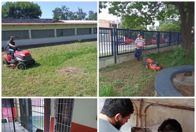 En la Escuela Rector Villafañe y en la ENI Juan Crisóstomo Álvarez, se llevaron a cabo tareas de soldadura y electricidad, mientras que en la Escuela Prospero García, se hicieron tareas de desmalezamiento tanto en el interior como adyacencias.