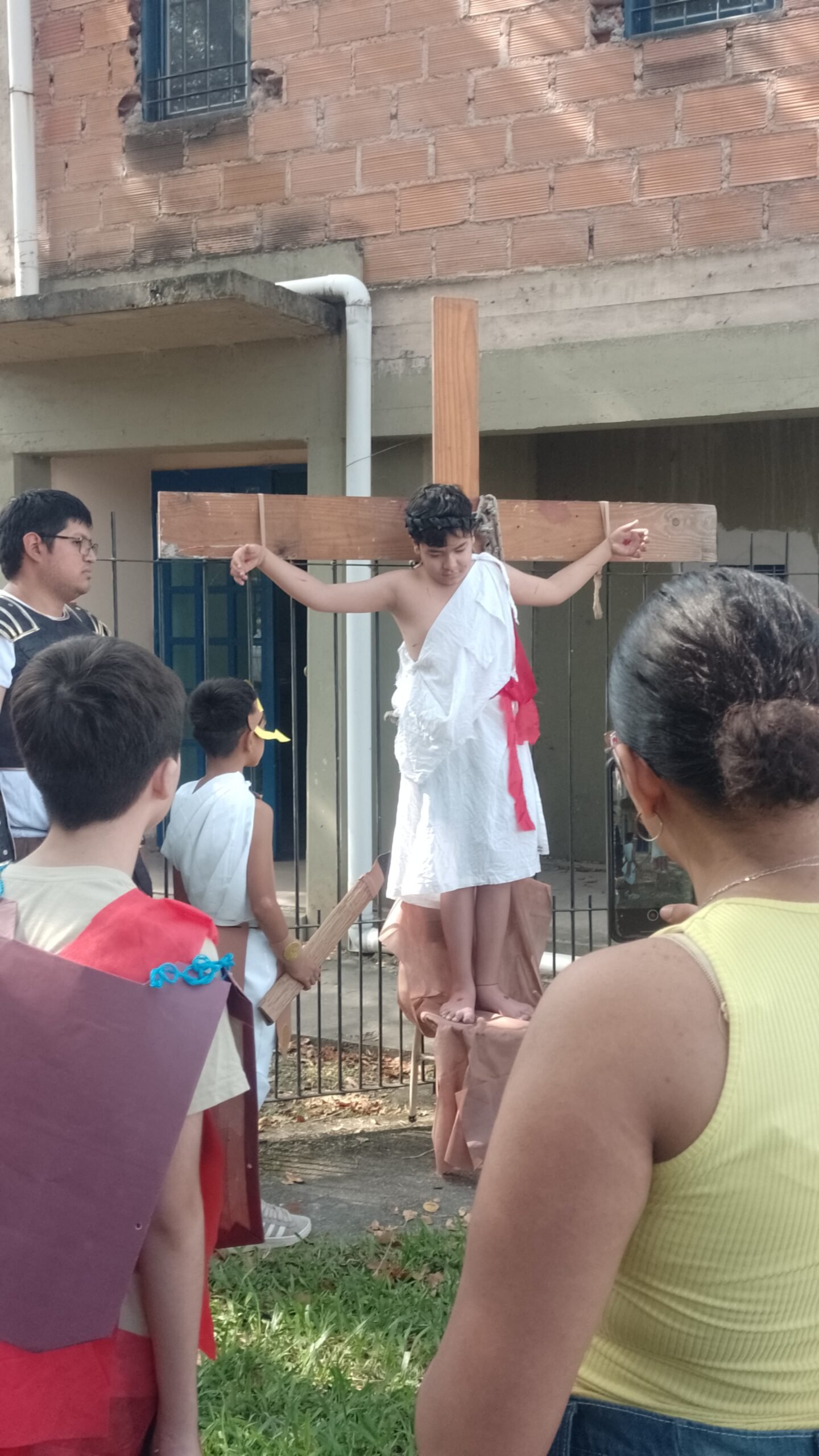 Durante la mañana del viernes los chicos que asisten a catequesis en la Iglesia Esperitu Santo escenificaron La Pasión del señor en una celebración muy emotiva.